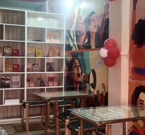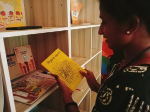 एक खुली अलमारी में कुछ किताबें सजाकर रखी थीं—उन पर शीर्षक थे: ताना-बाना, नारीवादी सहभागिता, कानून में खामोशियाँ। ये किताबें महज़ पन्नों का ढेर नहीं थीं, ये समाज के उस ढाँचे को समझने और चुनौती देने का प्रयास थीं, जो लड़कियों को ‘क्यों’, ‘कब’, और ‘कहाँ’ के घेरे में बाँधता है।